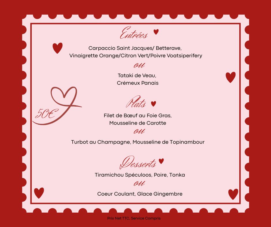 !💖À l’occasion de la Saint Valentin, Gaëtan vous propose un menu spécial, imaginé pour célébrer l’amour et la gourmandise.